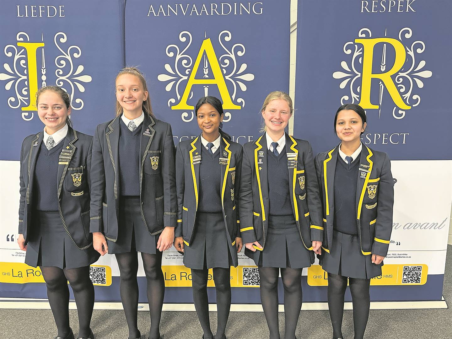 Die Hoër Meisieskool La Rochelle het onlangs hul hoofleiers vir 2024 aangekondig. Van links is Marcél Dippenaar (onderhoofmeisie