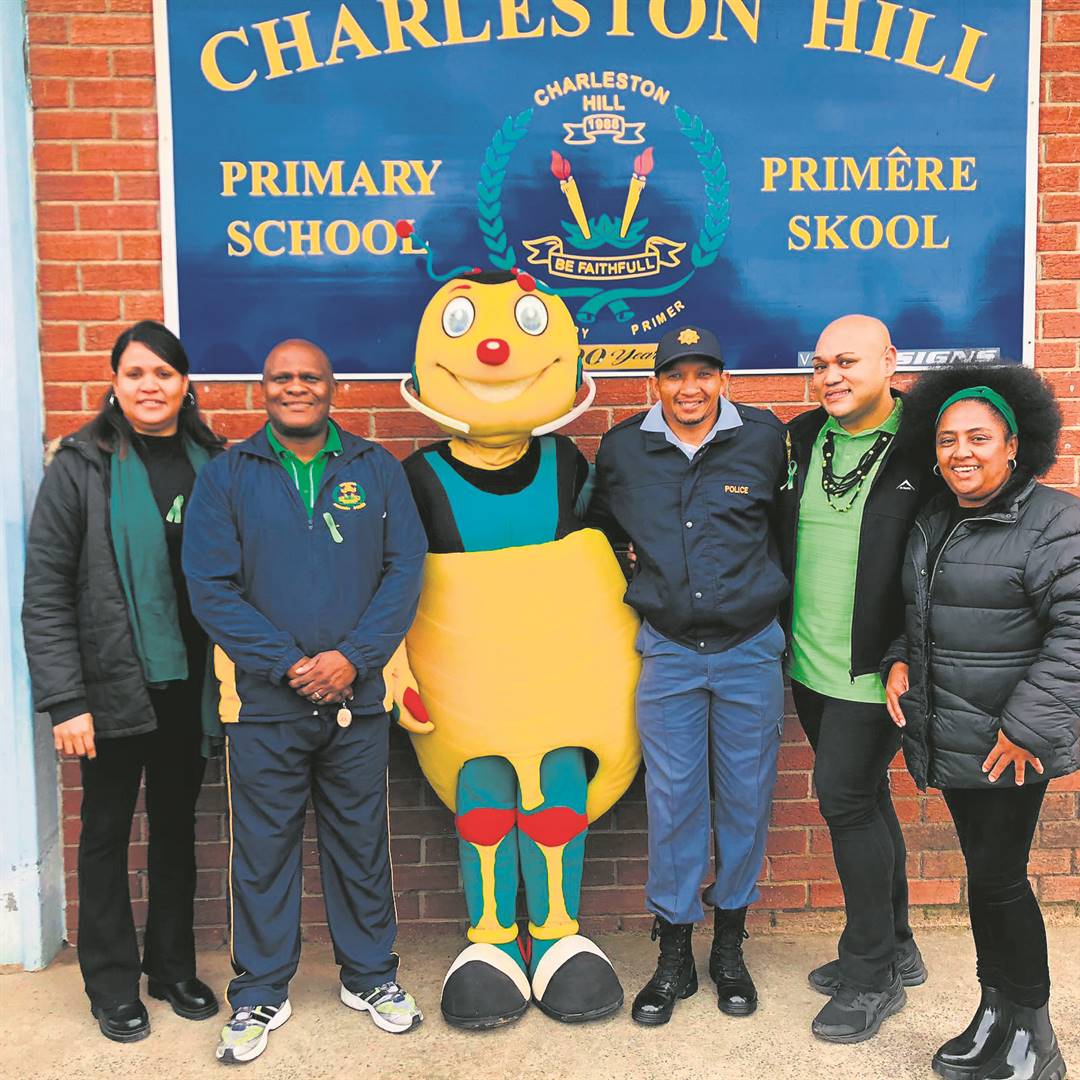 Charleston Hill Primary had an information session on Friday 2 June in collaboration with local police and Cansa to prioritise the rights and safety of children. South Africa commemorated child protection week from 29 May to 2 June. This is a crucial initiative that aims to bring attention to the well-being of the youth. Here are Ammaarah Cassiem (educator), Wilfred Frolicks (acting principal), Tok-Tokkie (Cansa mascot), Cheslyn McKenny (police and school governing body chairperson), Danfred Afrika (Life Orientation subject head) and Naomi Philander (Cansa social worker).