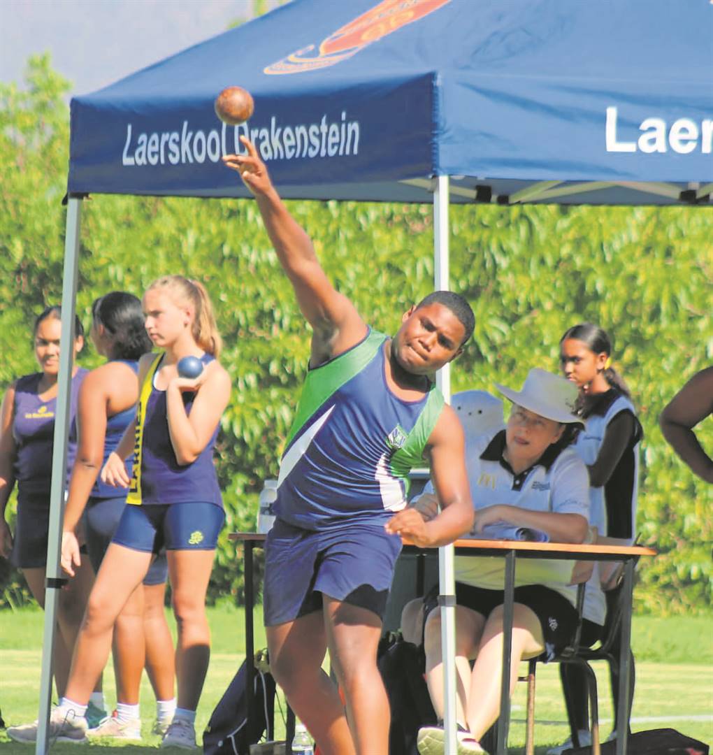 Khaiden Poggenpoel van William Lloyd Primêr wys sy staal in die seuns o.13-gewigstoot. Foto’s: Ernest Kilowan