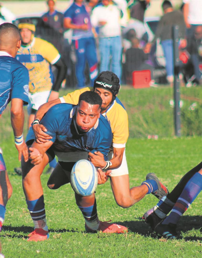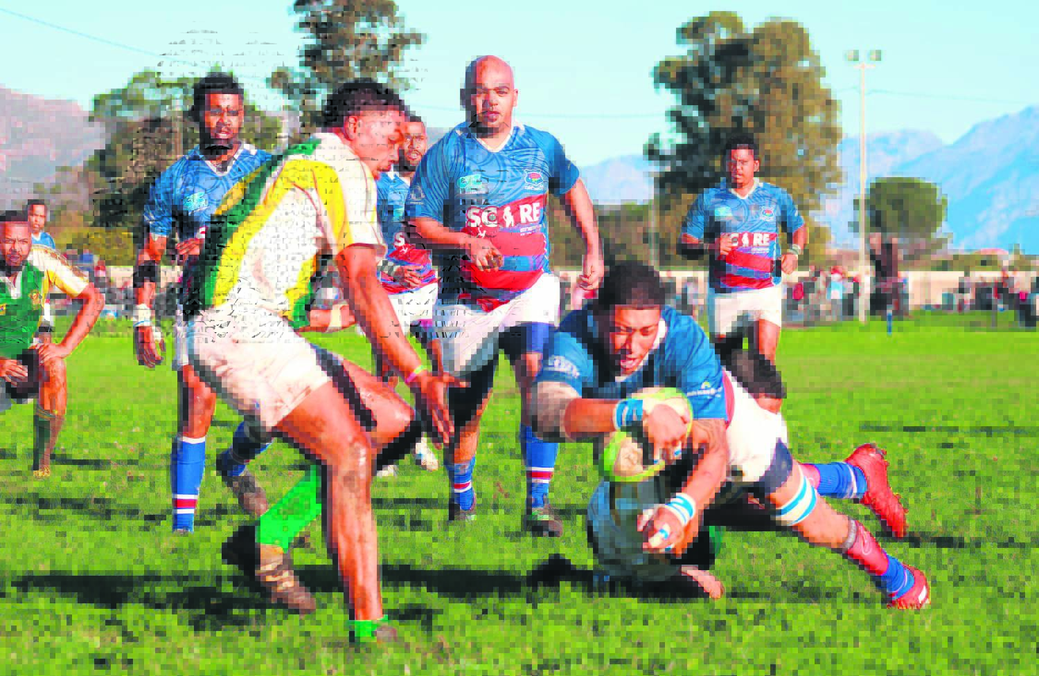 Die rugbyklubs Young Gardens en Allandale het Saterdag by die Daljosafat-stadion in ’n Paarlstreek-rugbywedstryd gespeel. Young Gardens het maklik gewen met 31-7. Bo duik Lester Williams van Young Gardens oor vir sy drie teen Allandale.Foto: Ernest Kilowan