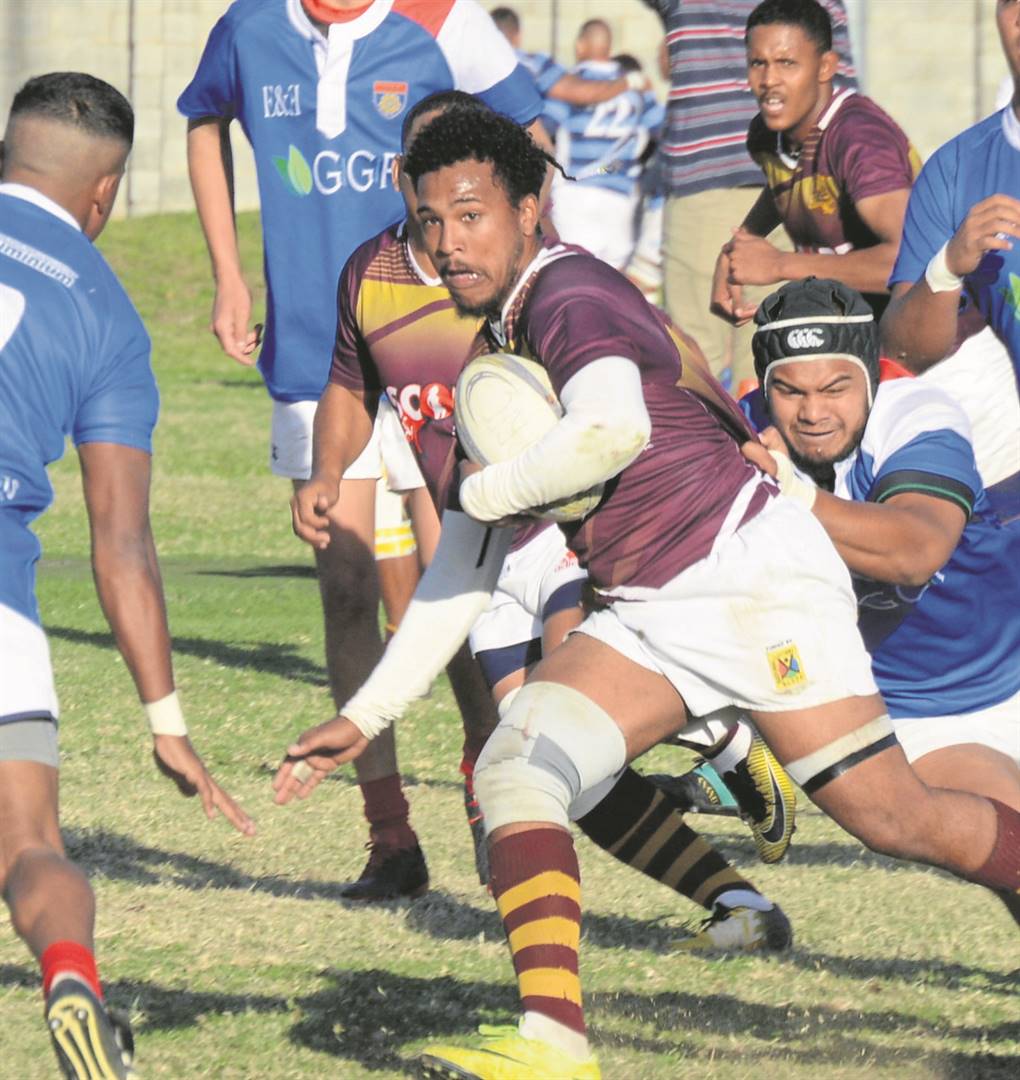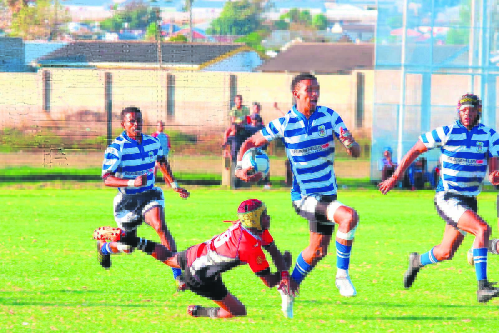 Young Peoples se Dylon Ross is hier op pad doellyn toe in hul wedstryd Saterdag teen Primroses. Peoples klop hul teenstanders 37-24. Foto: Jerome Francke