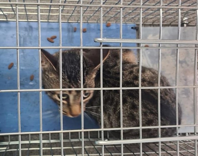 Fortunately the kitten’s collar had a contact number on it. The owner was traced and the cat is now safely back home.