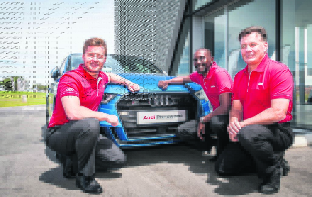 From left are Simon Moss, Tschops Sipuka and Terry Moss with an Audi S3. photo:RYAN MOSS