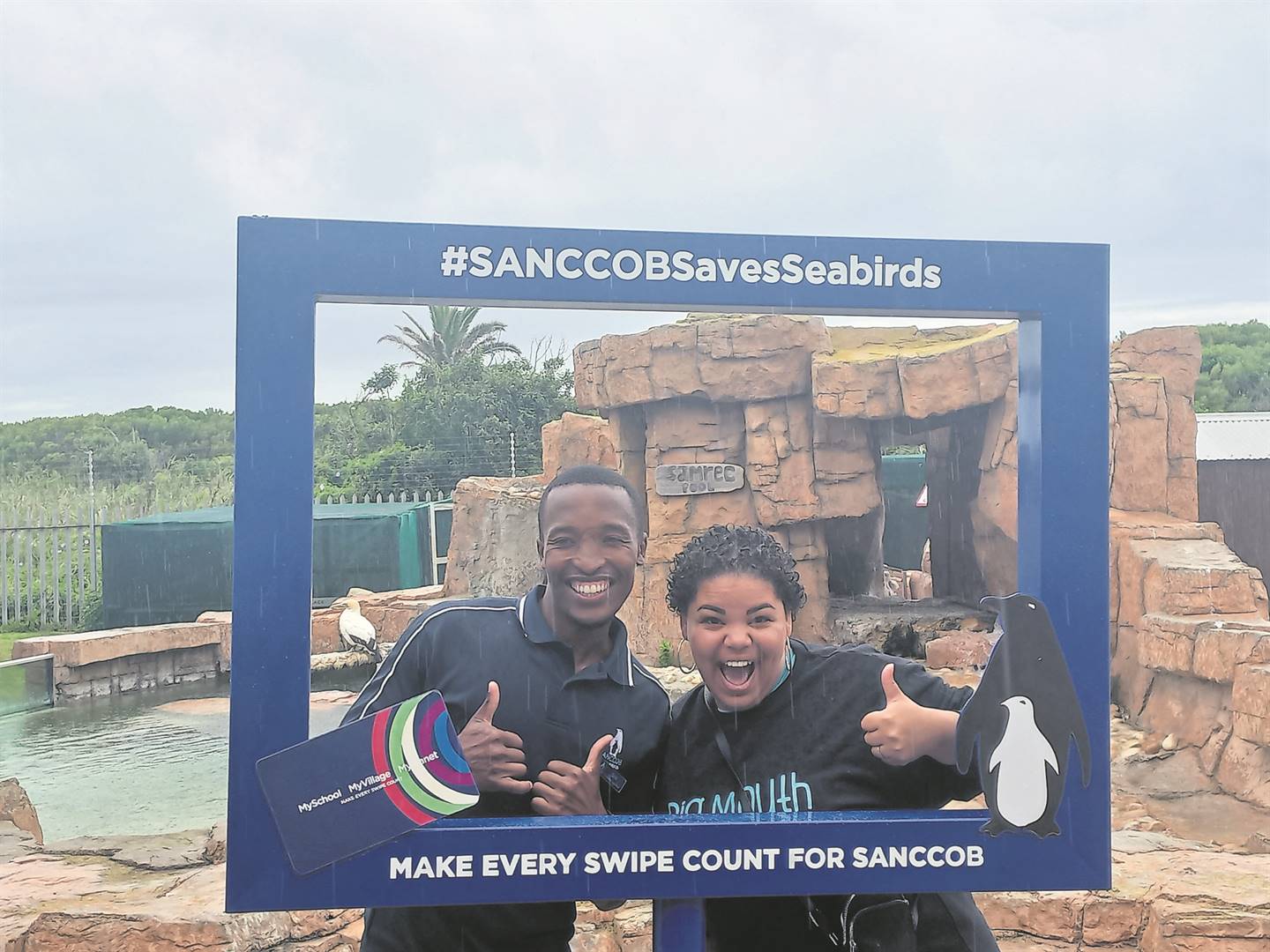 One of the stops on the Bus Tour is to SANCCOB. Not even the rain could stop Simbonile Mdunyelwa and Ranique Roberts from posing for a picture. Photo:CANDICE BEZUIDENHOUT