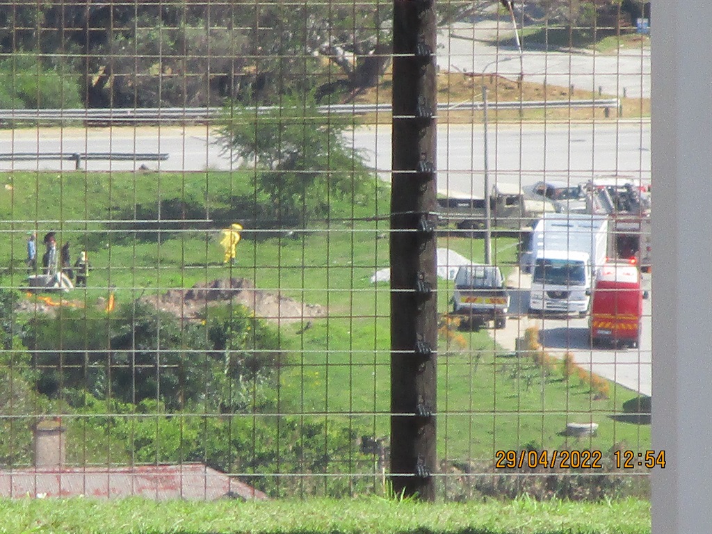 “Lucky dog. They stayed with the dog until the Humewood Fire Team arrived to extract the dog. The firemen had to put two ladders together to get to the bottom of the manhole. A fireman put on a full bright yellow hazmat suit, obviously to protect him from possible rabies infection.