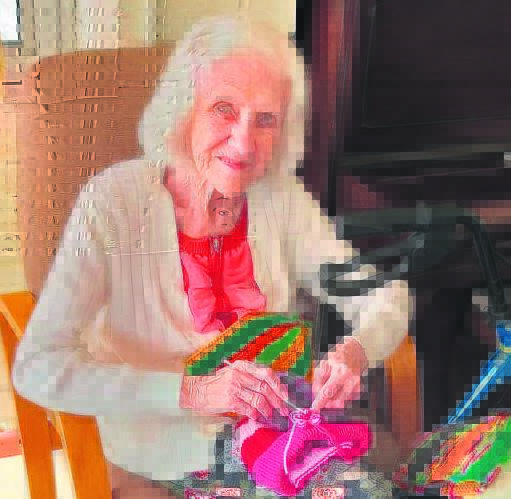 Ella Louw, one of the residents at the ECHO Foundation, continues to knit beanies for medical staff at various hospitals in the Bay. INSET:Knitted beanies are created by residents at the ECHO Foundation and are distributed to the Covid-19 medical staff in the Bay. PhotoS: Supplied