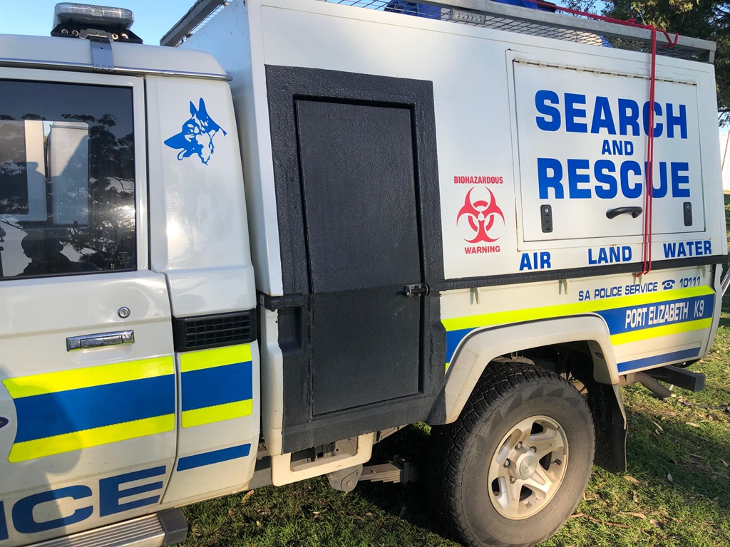 A SAPS search and rescue vehicle at the Swartkops River where a search is underway for a missing student.