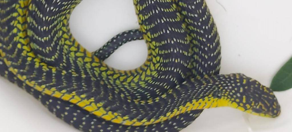 Pauline Herman, ’n fotograaf van Gqeberha, het die slang met die doring “agter die kop” gesien en sê sy is maar te bly haar hond, Athene, het haar attent gemaak op die heldergroen slang op die stoep.