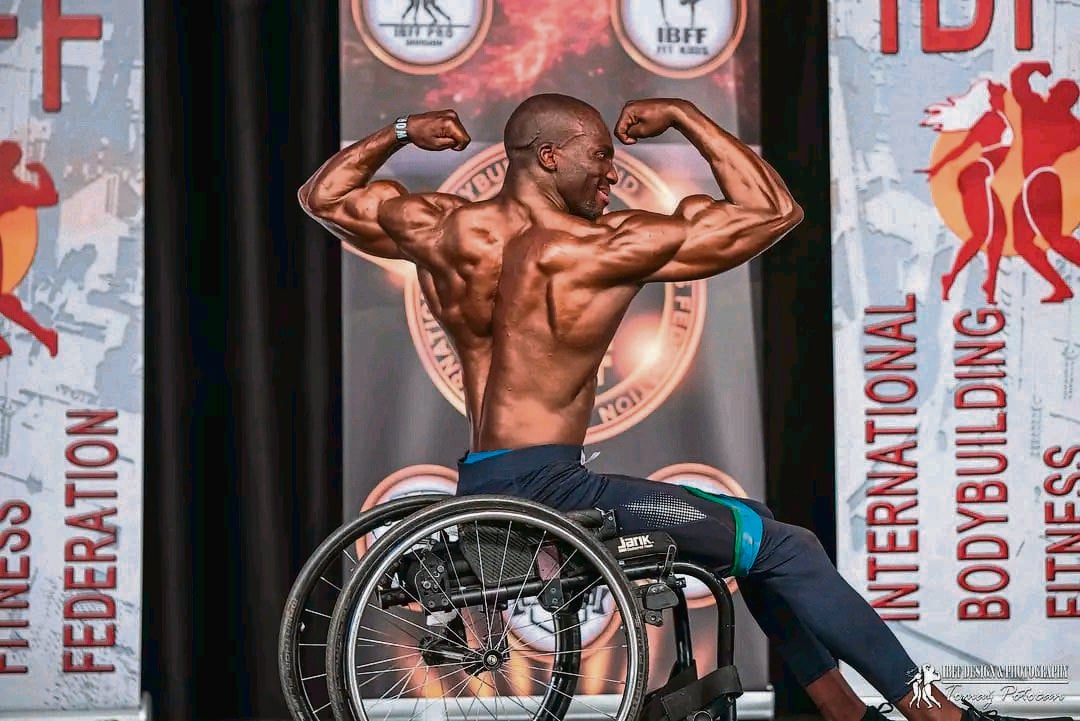 After taking part in the World Championships recently held in Slovenia and becoming the first wheelchair-bound bodybuilder pro in not only South Africa but also the whole continent, it is hard to believe that this man, from a humble informal settlement in Nelson Mandela Bay, had only been a bodybuilder for approximately a year.