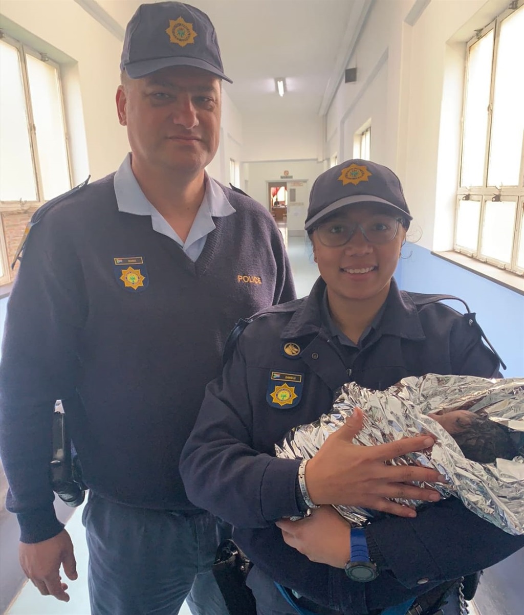 “An ambulance was immediately requested and on hearing the nature of the situation, Constable Shaneez Daniels from the K9 unit rushed to assist. Both officers managed to carefully cut the cord and the baby boy, who was already turning blue, was taken into the police vehicle while waiting for medical help. He was covered in a blanket and kept warm by Daniels.”