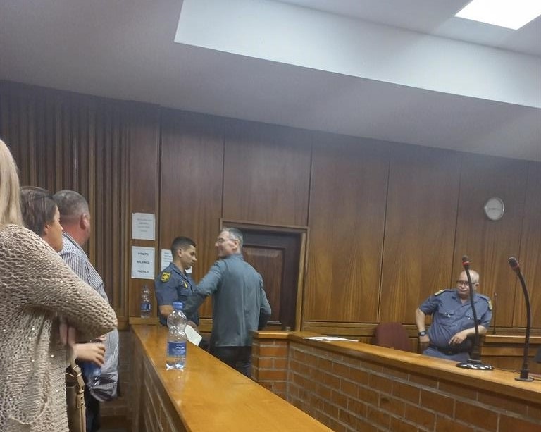 Arnold Terblanche smiles at the people in the gallery during today’s appearance in the Gqeberha Magistrate’s Court.
