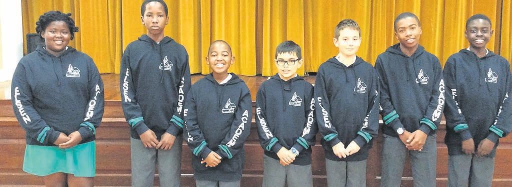Elsen Academy Grade 7 learners recently received new hoodies. Showing off the design from left areSmangaliso Frans, Luphumlo Gunuza, Botshelo Phetla, Ashton Kilian, Matthew Donaldson, Lukhanyiso Mnyaka and Bolu Fagbuyi. Photo:SUPPLIED