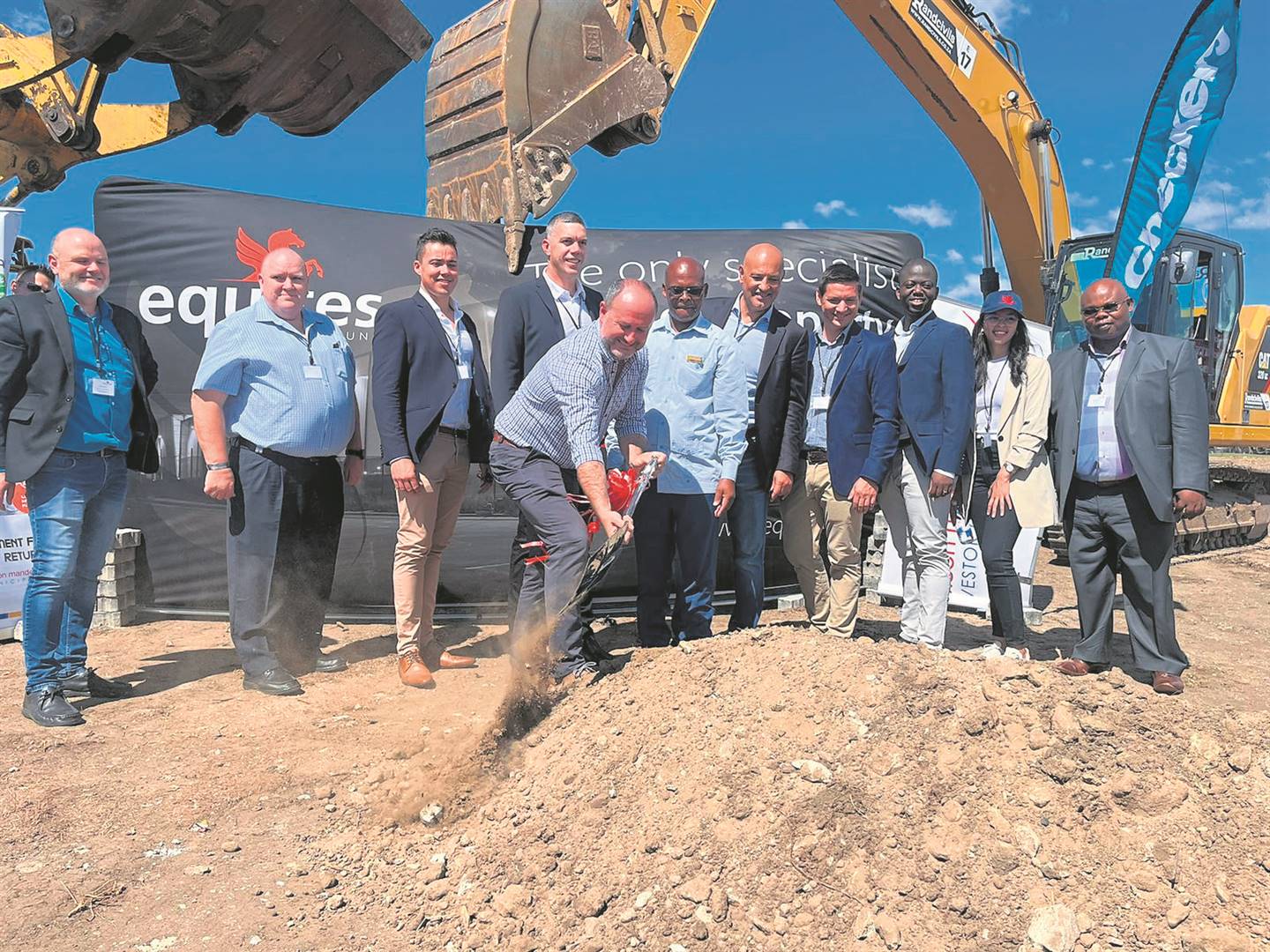 The sod turning ceremony recently took place at the site of the existing Shoprite Distribution Centre in Wells Estate, with Nelson Mandela Bay mayor, Retief Odendaal, operating the shovel. Photo:SUPPLIED