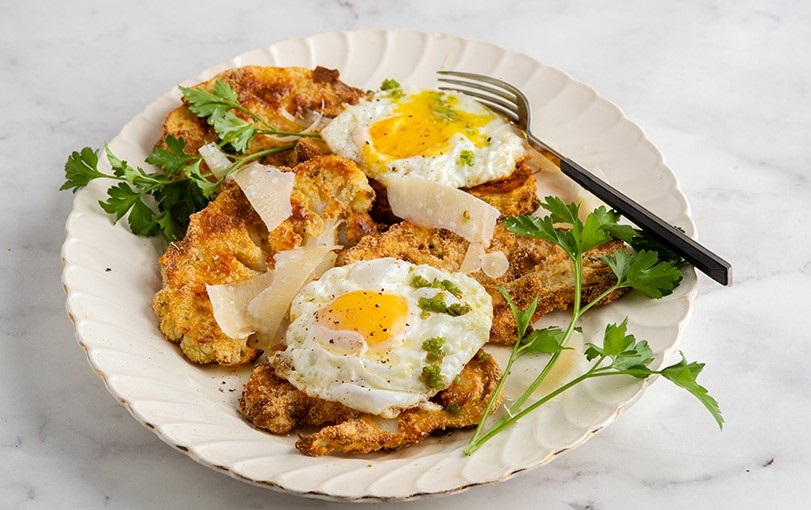 Parmesan Crusted Cauli-Schnitzel with Crispy Fried Egg