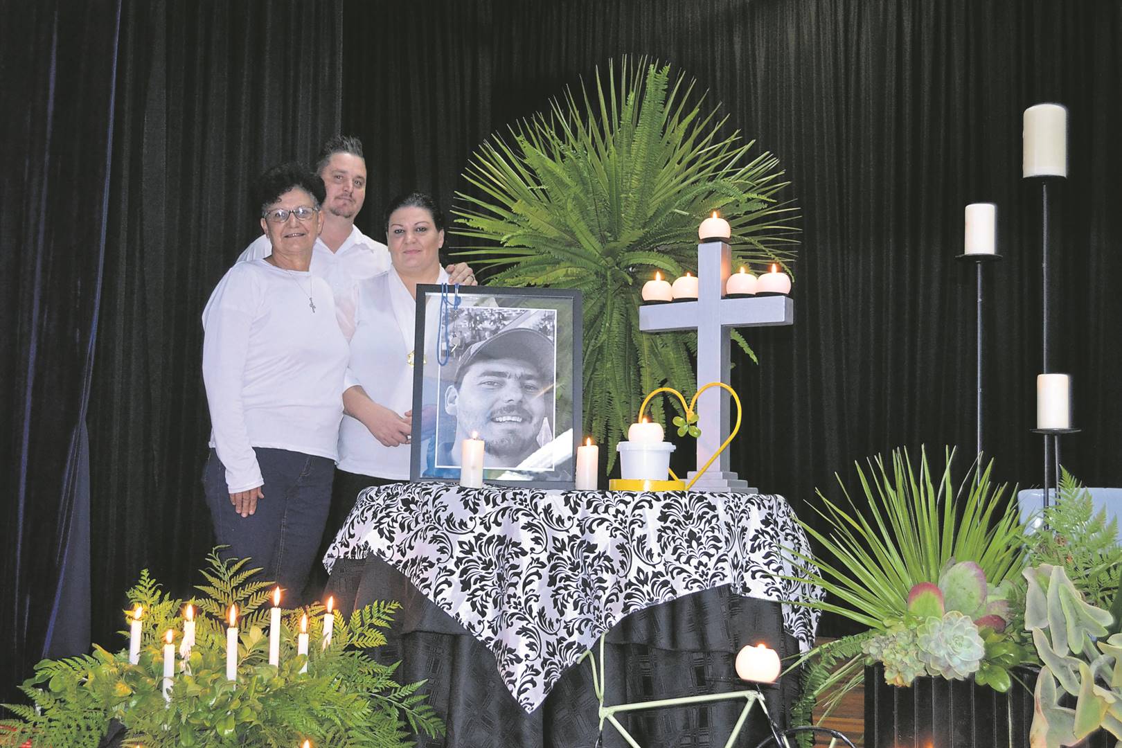 John Tessner’s family at his memorial service held by Westview School. From left are Jóshine du Preez (mother), Donavin Smith (brother-in-law), and Colette Smith (sister).