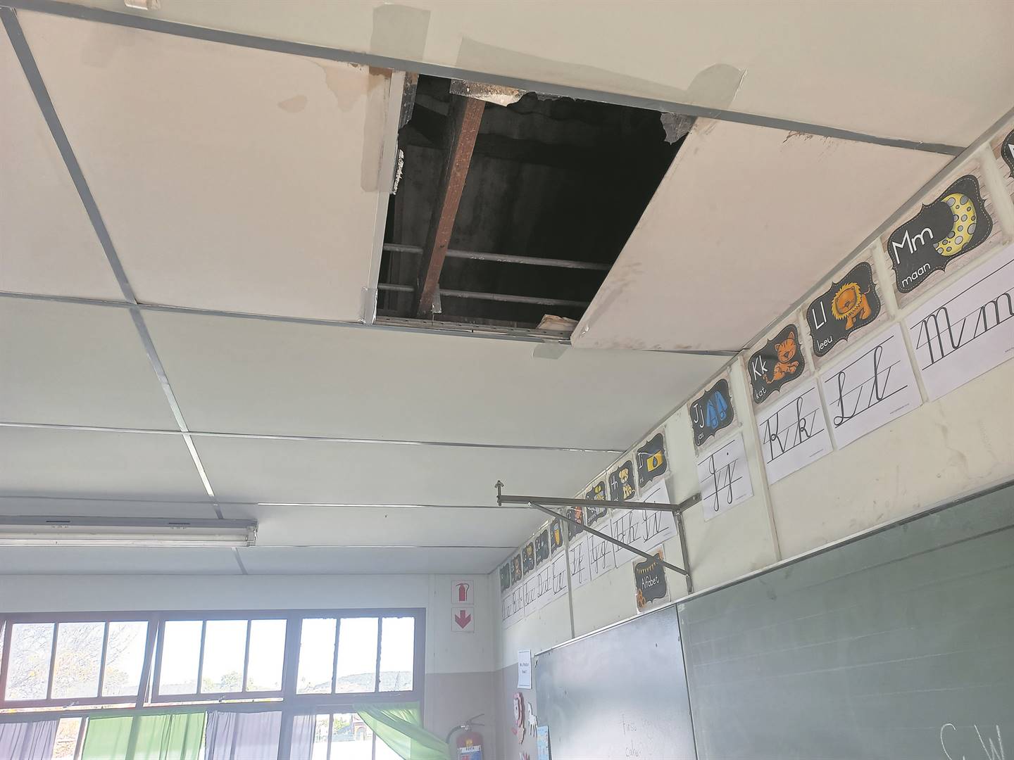 He entered a classroom and after being greeted politely by the learners, Reciet pointed to a gaping hole in the ceiling.