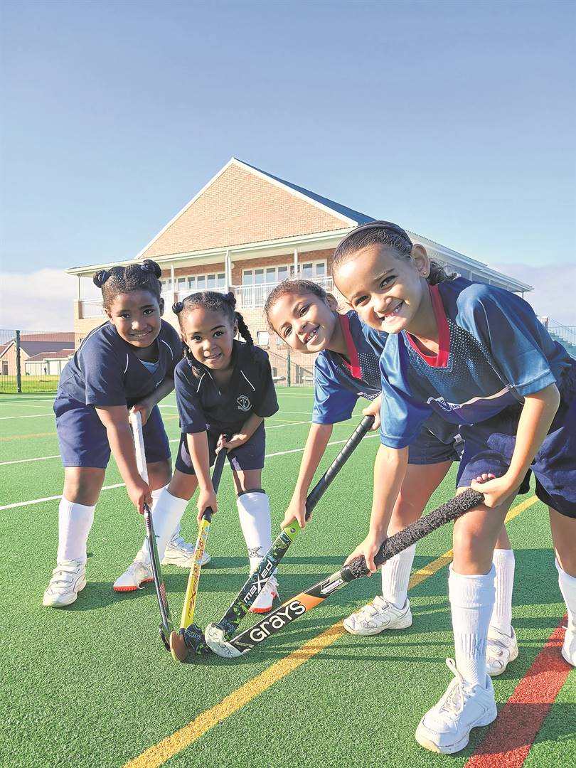 Ready, set, hockey! Jordan Meintjies, Jemma Snyders, Jesse Creamer and Alexis Barendse stand at the ready for the Kabega Primary School sports day on May 18, as part of the school’s 60th anniversary celebrations which start with a fun run, followed by junior rugby, netball, and hockey action later in the day. On Sunday, May 19, a church service will be held in the school hall at 11:00. Photo: Supplied