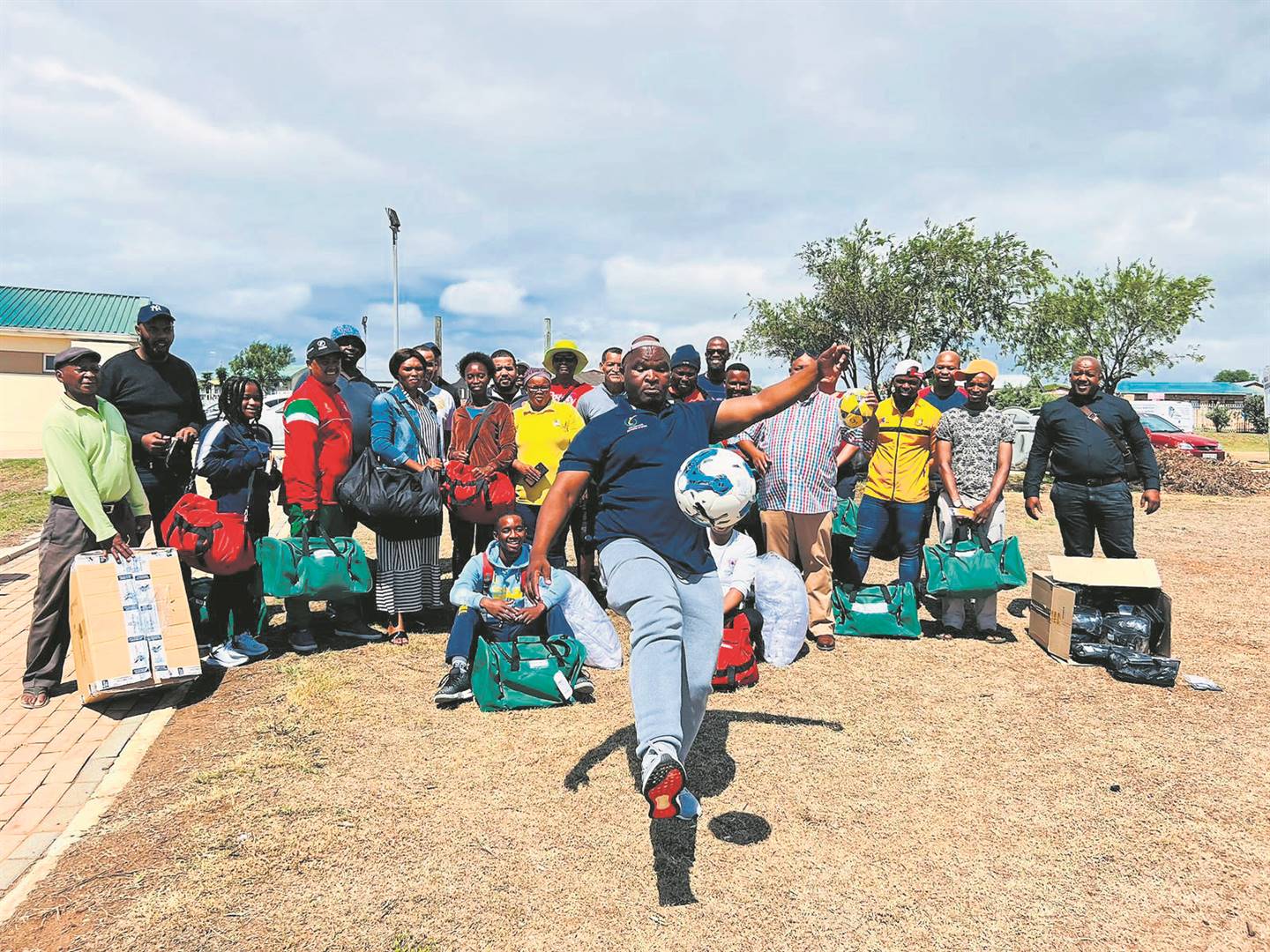 SRAC MMC, Bassie Kamana, shows off his soccer skills to the beneficiaries. Photo:supplied