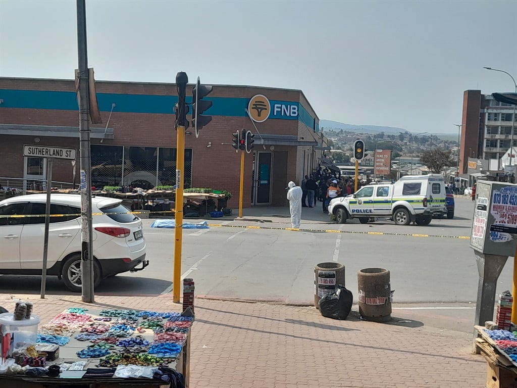 Die misdaadtoneel in Mthatha waar ‘n verkeersbeampte vanmiddag doodgeskiet is.