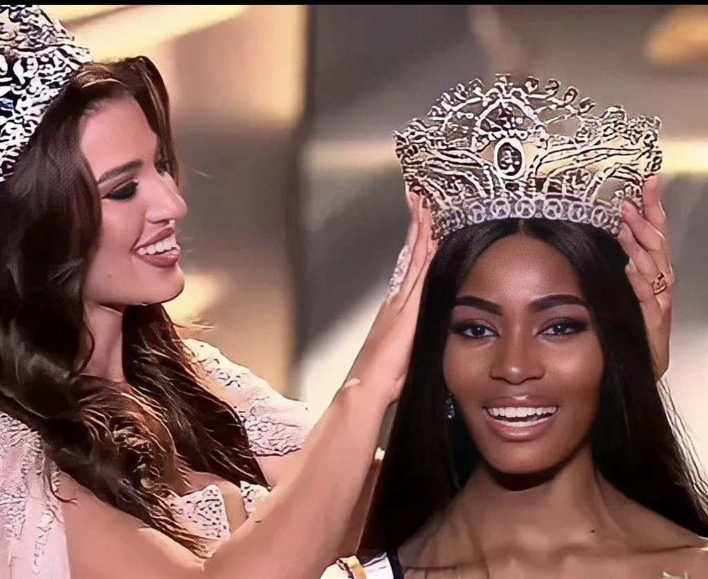 Miss South Africa, Lalela Mswane, is crowned Miss Supranational by her predecessor, Namibia’s Chanique Rabe.