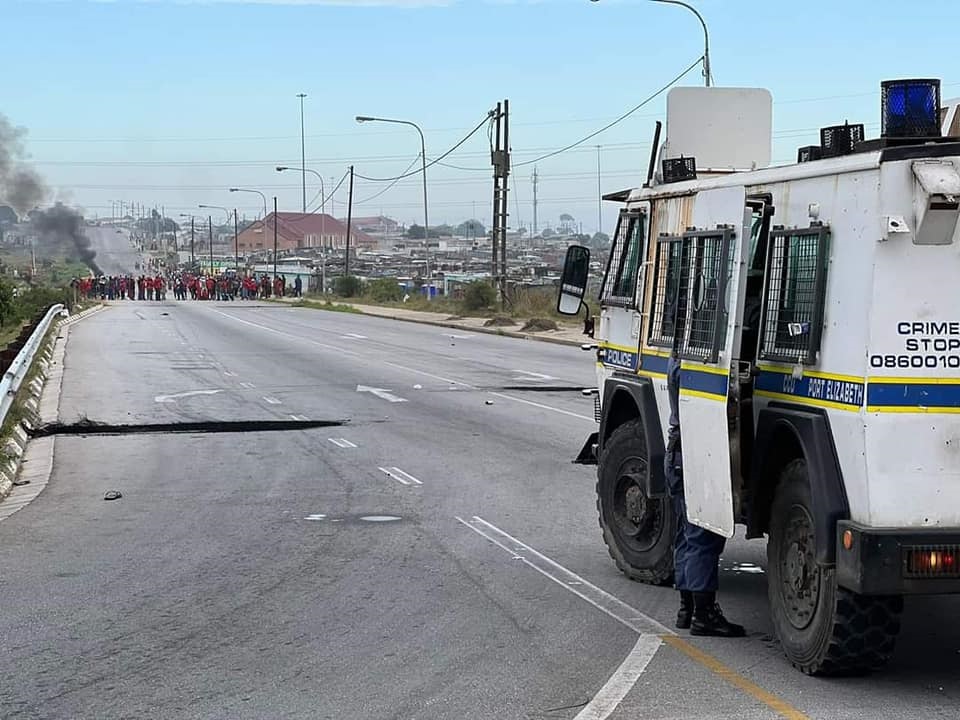 Not all protests have been volatile, however, with some just consisting of peaceful marches with chanting and blocking roads. Tyres have also been burning in Motherwell and Chelsea Road in Perseverance.