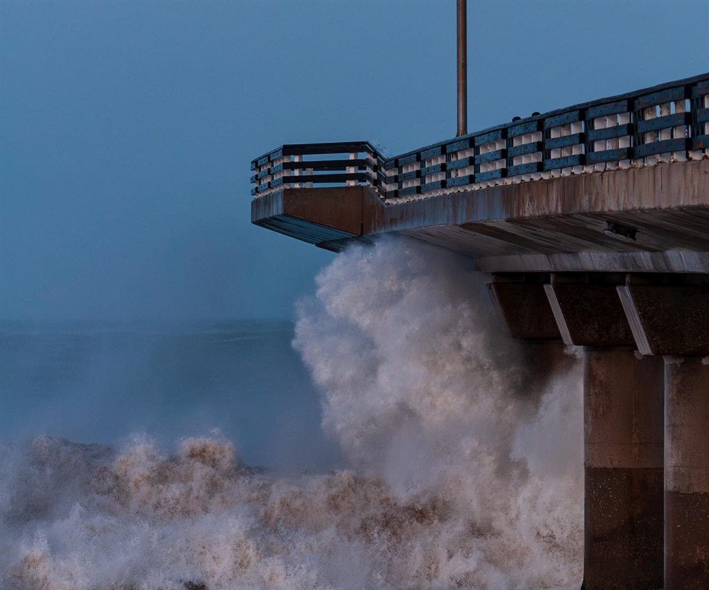 The large wave along the pier at Hobie Beach, Summerstrand, Gqeberha.