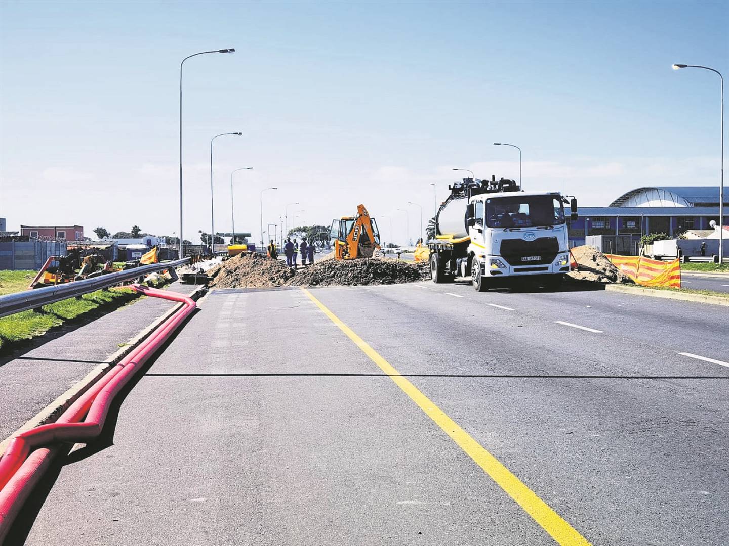 Meanwhile, the Water and Sanitation Directorate has appointed a contractor to determine the extent of the repairs required, and to complete the work which includes breaking through the road surface and removing the tar, excavating a large quantity of sand and installing shoring to prevent the excavation site from caving in.