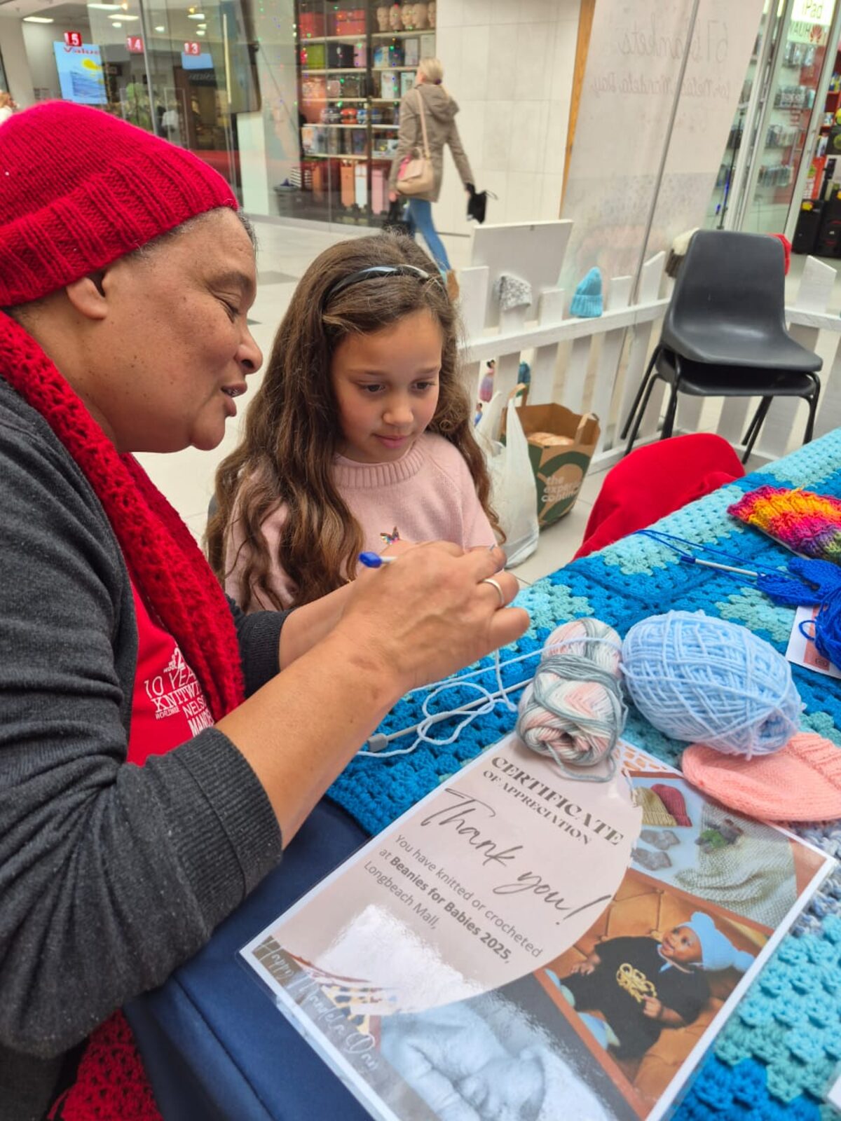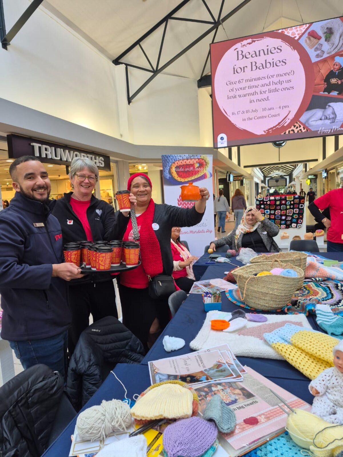 Capetonians from far and wide played their part in honouring the legacy of the late Nelson Mandela by knitting beanies for those less fortunate at Longbeach Mall in Noordhoek from Wednesday 16 July to Friday 18 July.