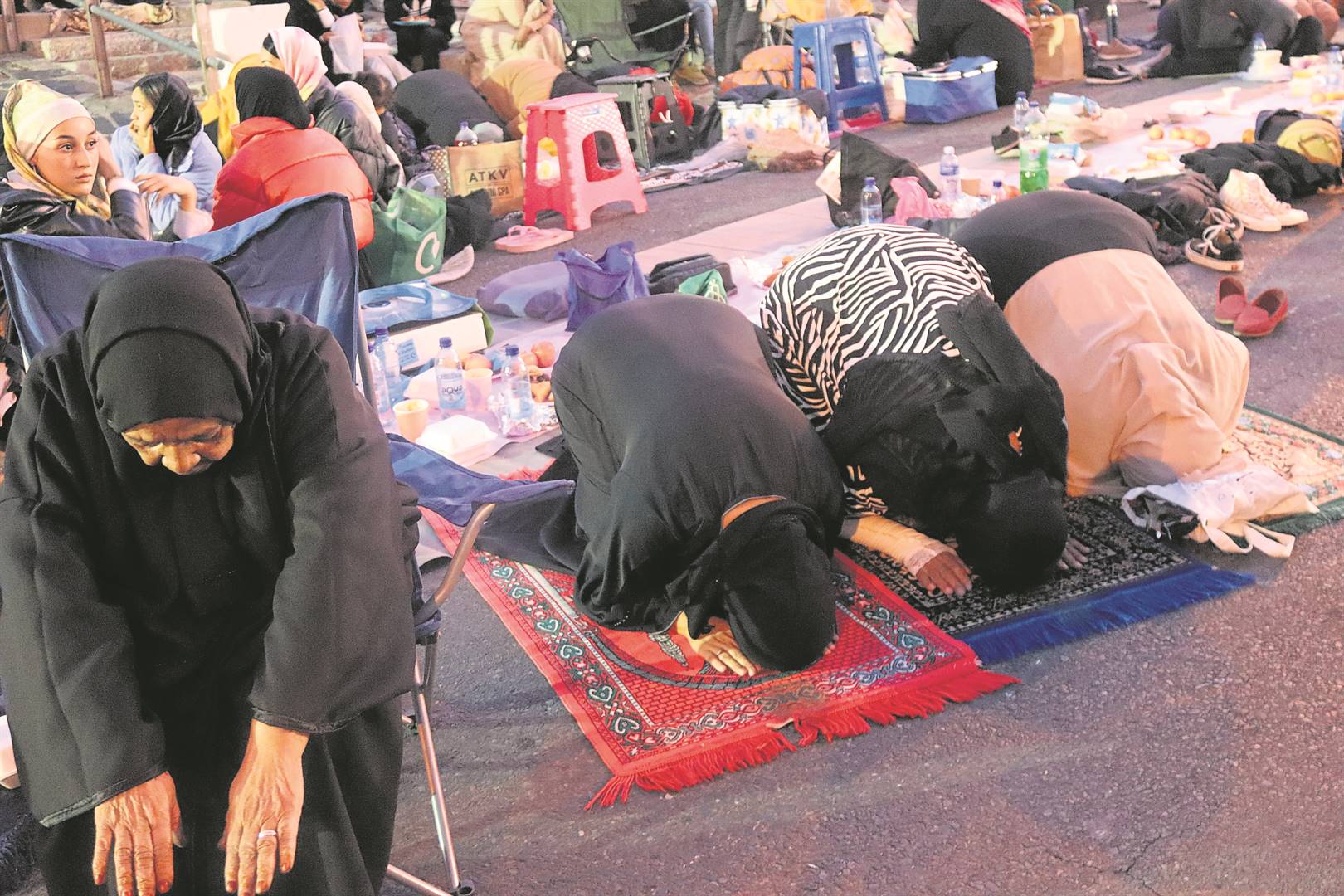 Silence filled the street at about 18:42 during the Athaan (call to prayer).