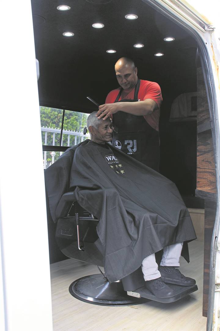 Partnering with RLabs in Bridgetown, Theunis parked his bus in Kiewiet Street on Wednesday 6 March, cutting more than 20 seniors’ hair. While he anticipated being there from 09:00 to 12:00, he had still finished up the last few heads around 13:00.