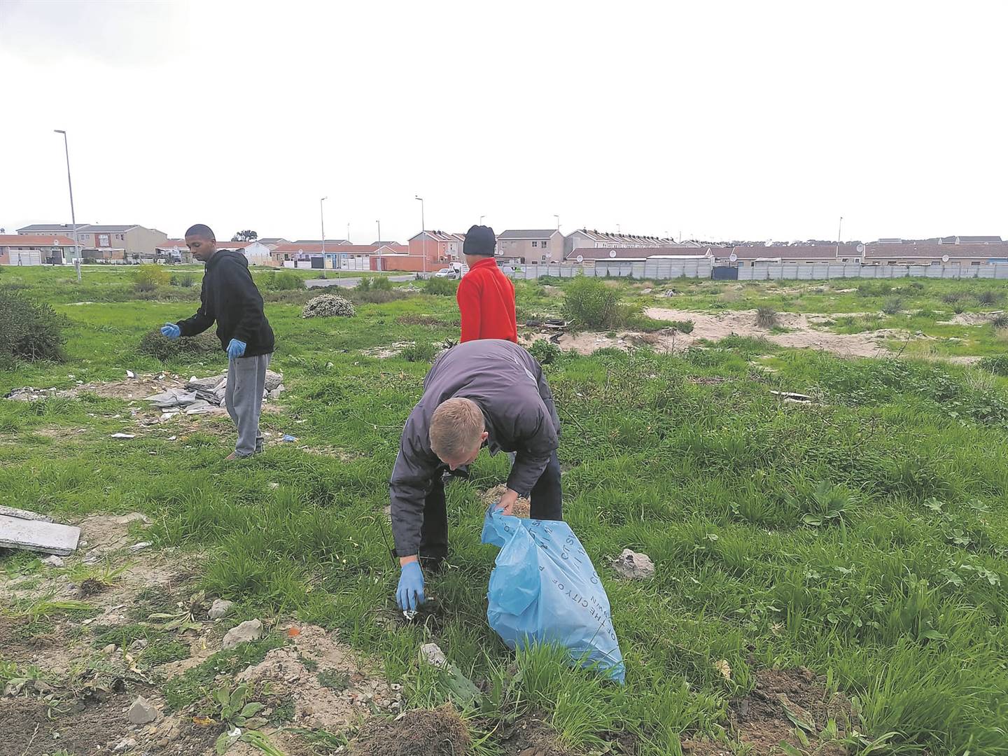 The New Horizon Neighbourhood Watch together with community children from Pelican Park gave off their 67 minutes on Mandela Day by cleaning up a nearby field.