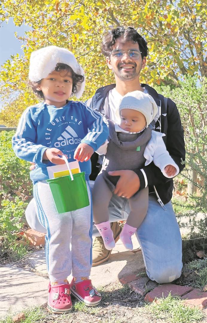 Salih Khan with his dad, Adil, and sister, Aayah.