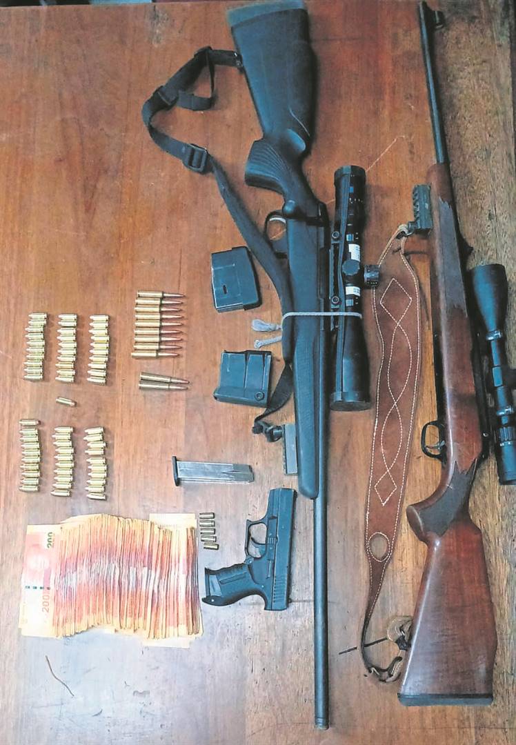 During the search they recovered two rifles, a pistol with no serial number and an assortment of ammunition and cash.