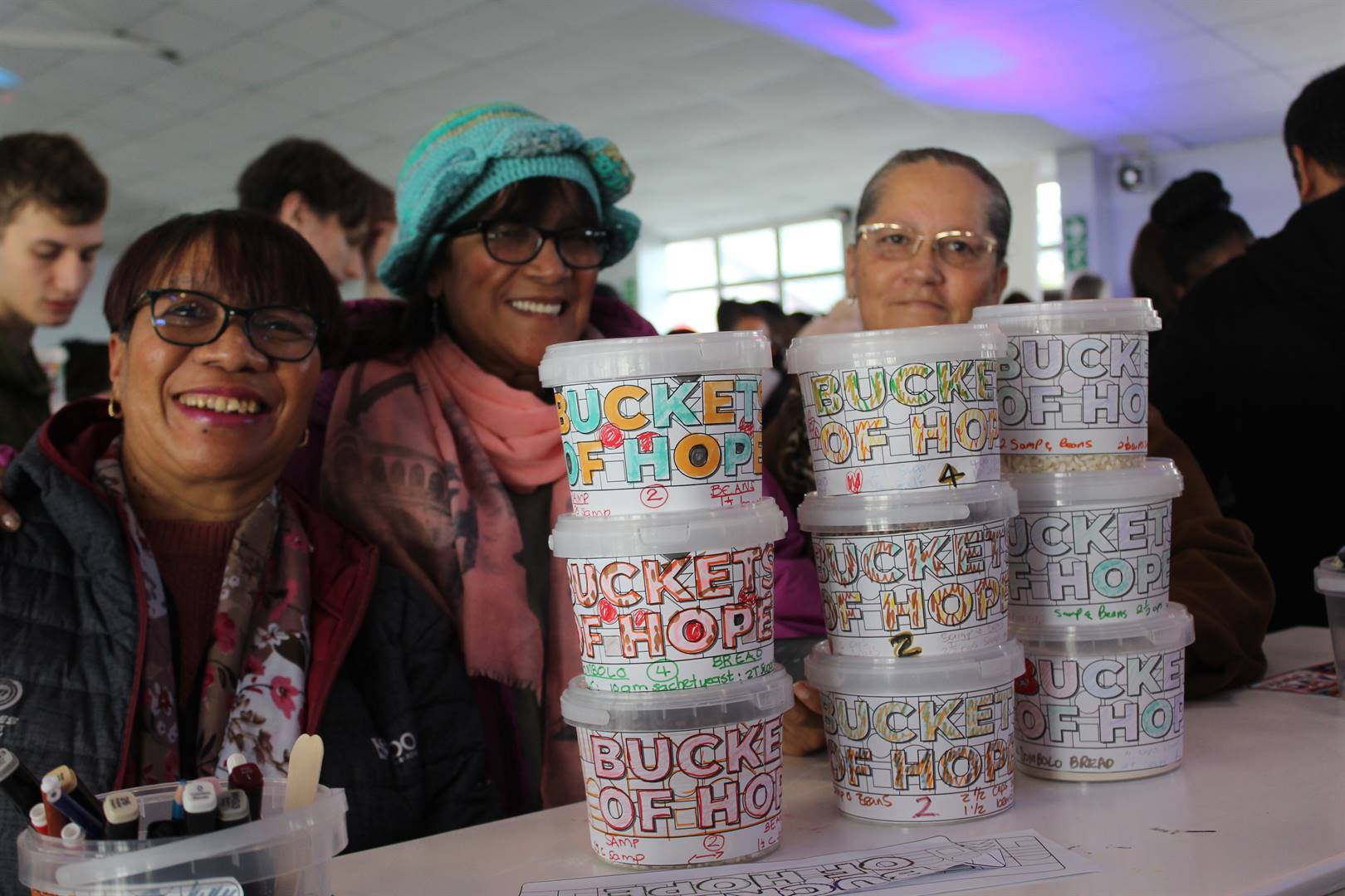 The group of volunteers managed to pack 600 buckets. Williams said similar events took place in Durban and Johannesburg.