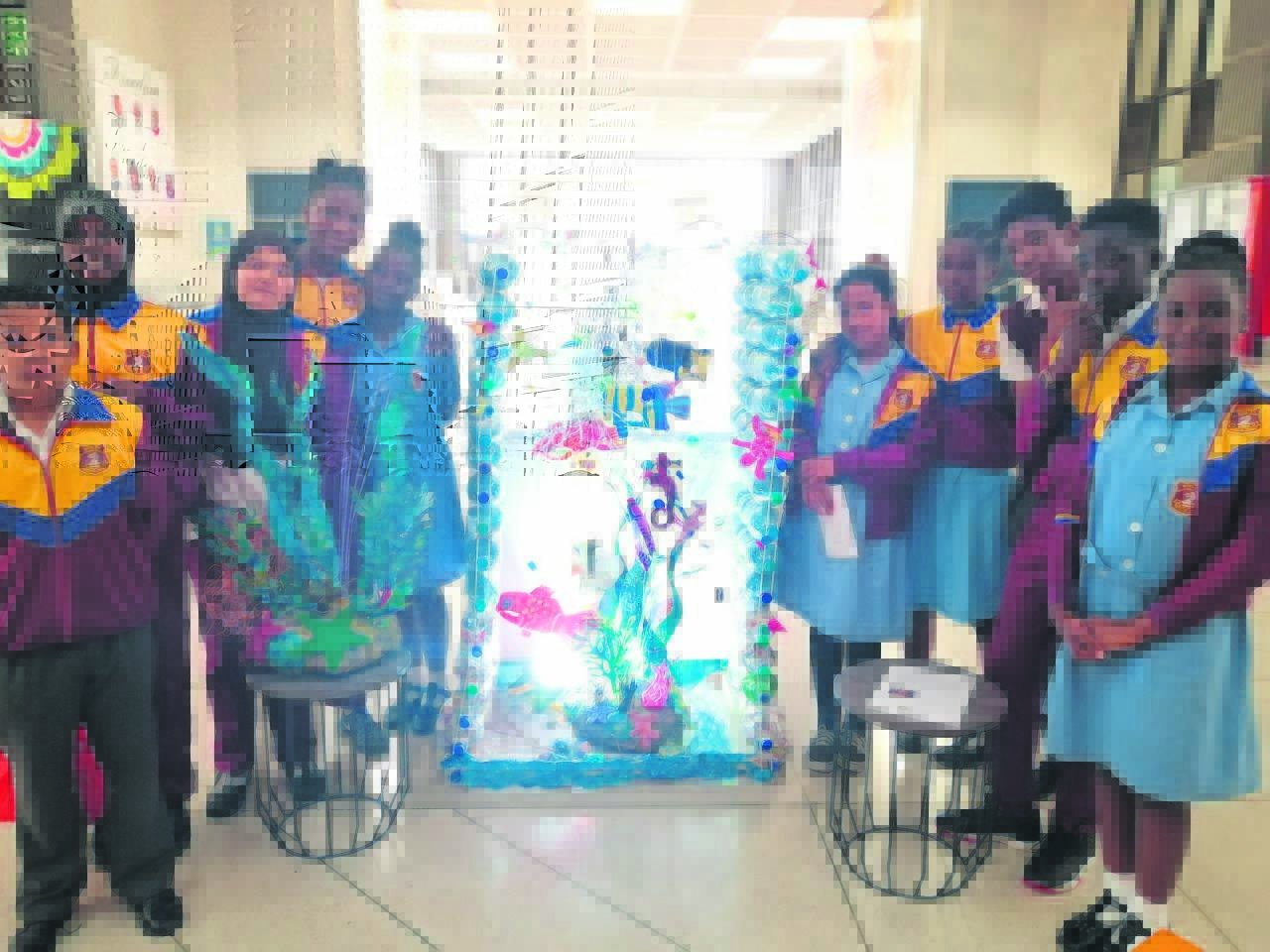 Ten Learners from Wesley Practicing were inspired by the ocean and created an aquarium using plastic bottles, bottle tops and plastic bags.