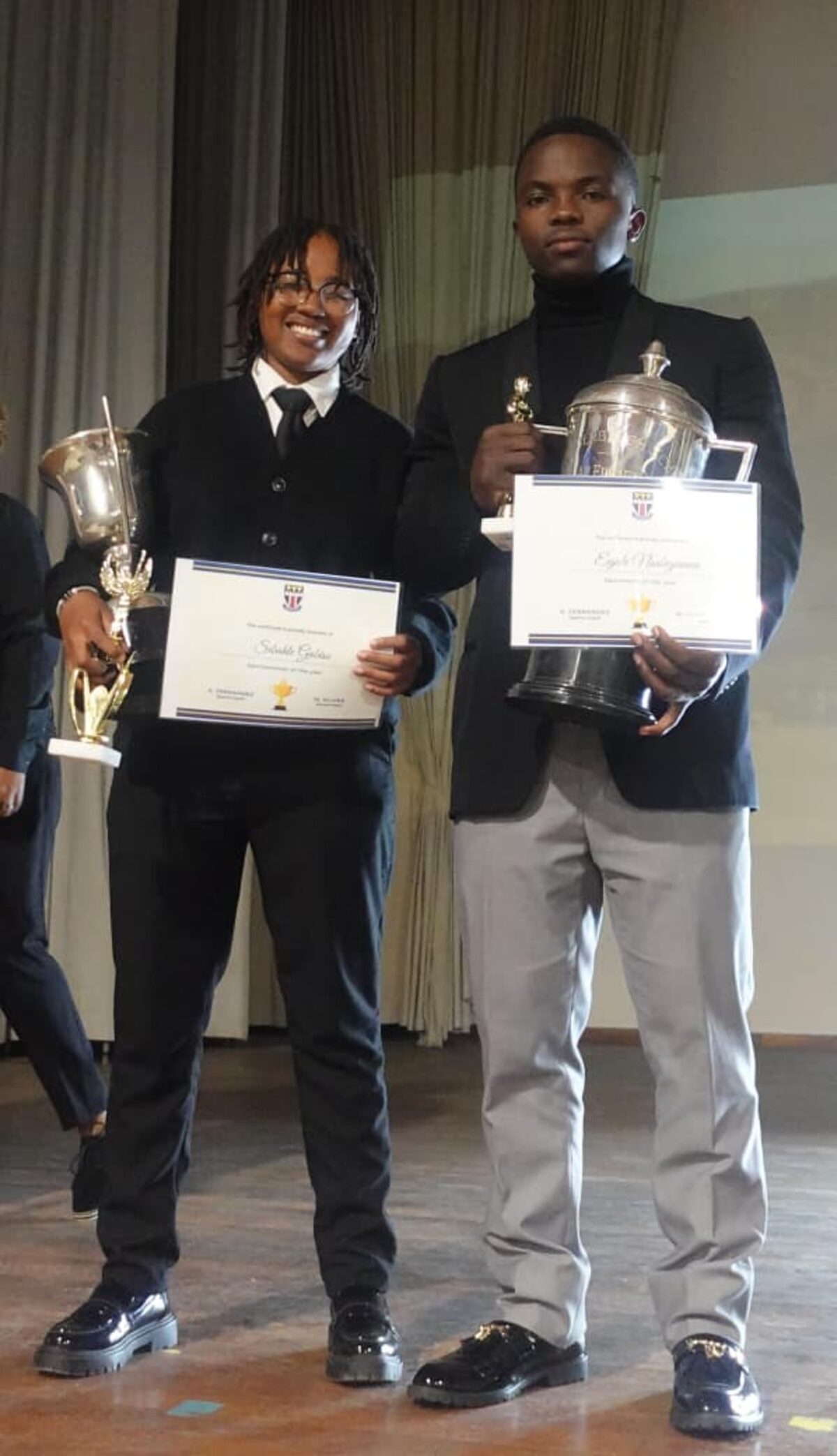 Grade 12 learners Sbahle Gabiso and Egide Nsabiyumva were named this year’s Sportswoman and Sportsman of the Year.