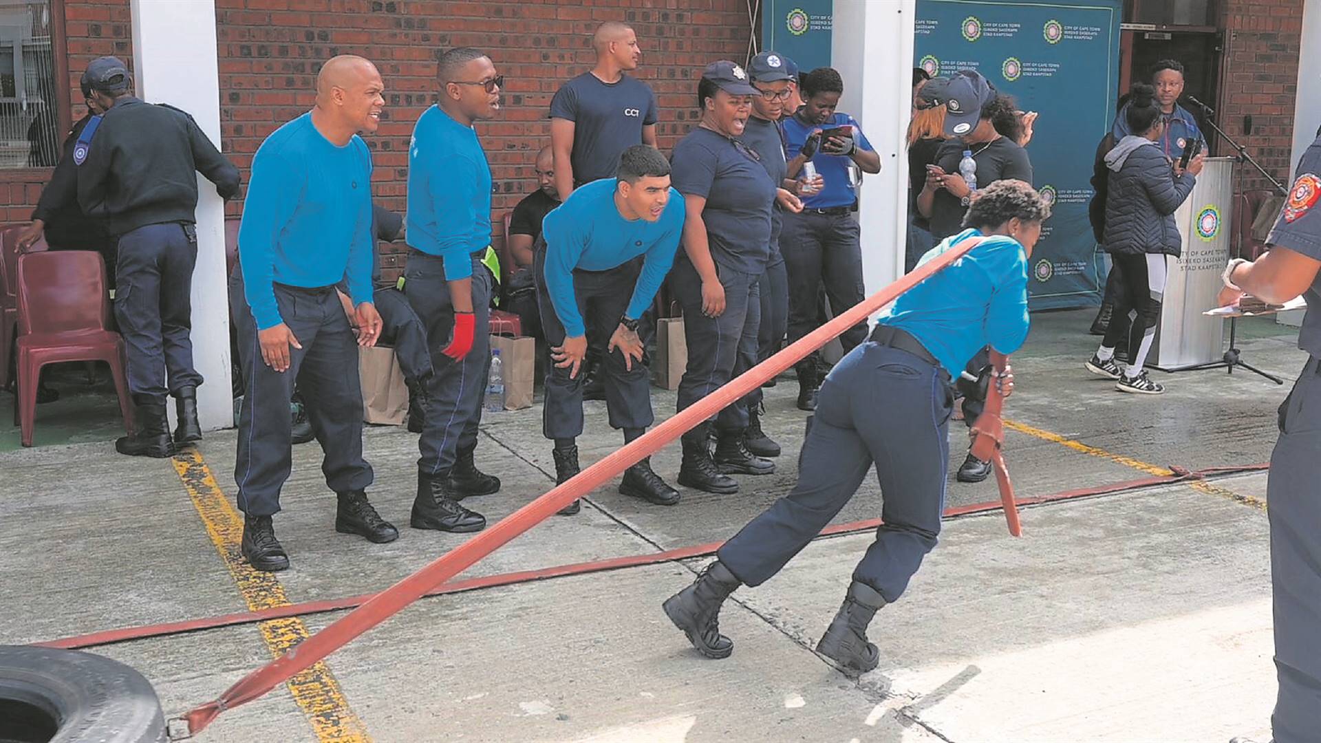 Quite a few cheers of encouragement and even more grunts of effort were heard when Metro Police, law enforcement officers, traffic services, VIP services staff – and the mayor of Cape Town – came together to test their mettle in the fire and rescue service’s domain.