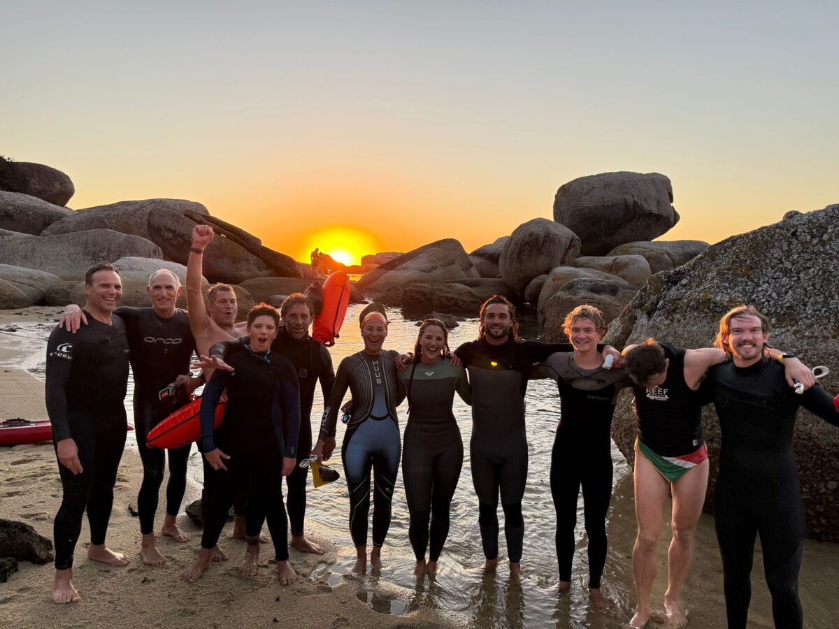One of the most memorable moments came at Oudekraal, where the group completed their final swim under the warm glow of the setting sun.