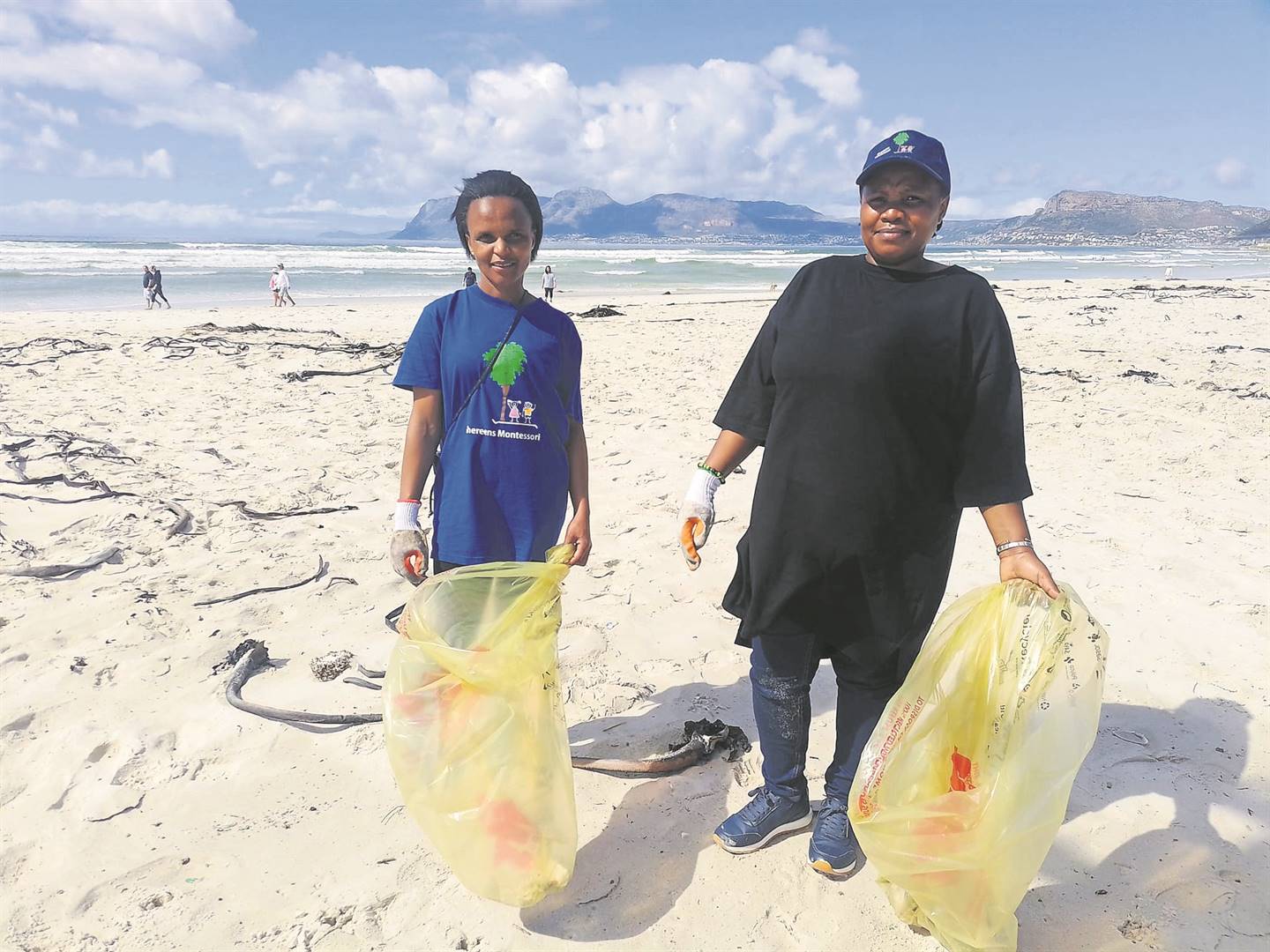 Nondumiso Mabena and Ncumisa Modebele from Nyanga filled their rubbish bags as they made their way from Muizenberg Beach towards Sunrise Beach. “We are just happy to be here and to clean-up the beach,” said Modebele.