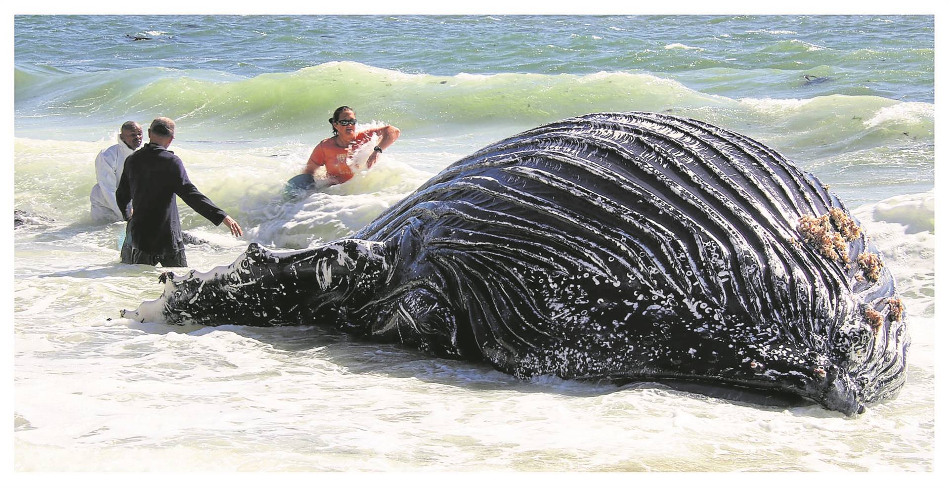 “Healthy whales don’t have such a large parasite hold,” he said. “It was a juvenile female humpback whale that was later identified as coming from the Gansbaai area.”