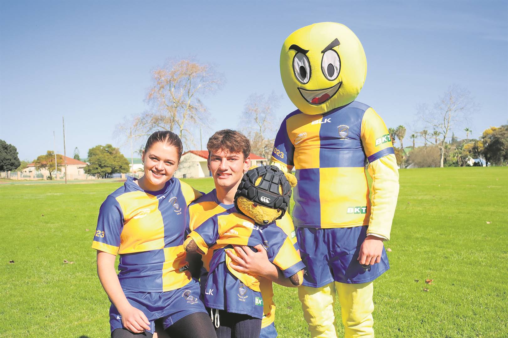 Malmesbury is hierdie week in blou en geel getooi in aanloop tot die jaarlikse interskolekragmeting tussen die Hoërskool Swartland (HSS) en Hugenote Hoërskool (HH). HSS is vanjaar die gasheer. Van links is Carla Botha (Mej. HSS), Hunter Grobler (HSS se eerstespan-rugbykaptein) en die gelukbringer Rockie. Lees boodskappe van die eerstespankapteins op bl. 4. Besoek Gazette se landingsblad op Netwerk24 vir die volledige programboekie.Foto: Ernest Kilowan