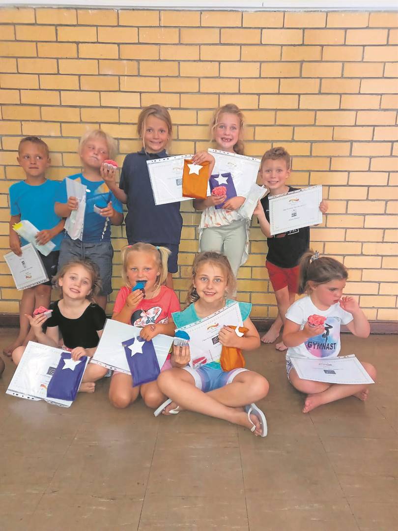 Die Langebaan Stars-gimnastiekklub in Yzerfontein het Maandag 28 November hul prysuitdeling in Yzerfontein gehou. Agter (van links) is Gerrit Loedolff, Connor Young, Anabel Loedolff, Lana Dearlove en Alexander Groenewald. Voor: Elné Nortjé, Ava Young, Leah Taljaard en Amber Nel.