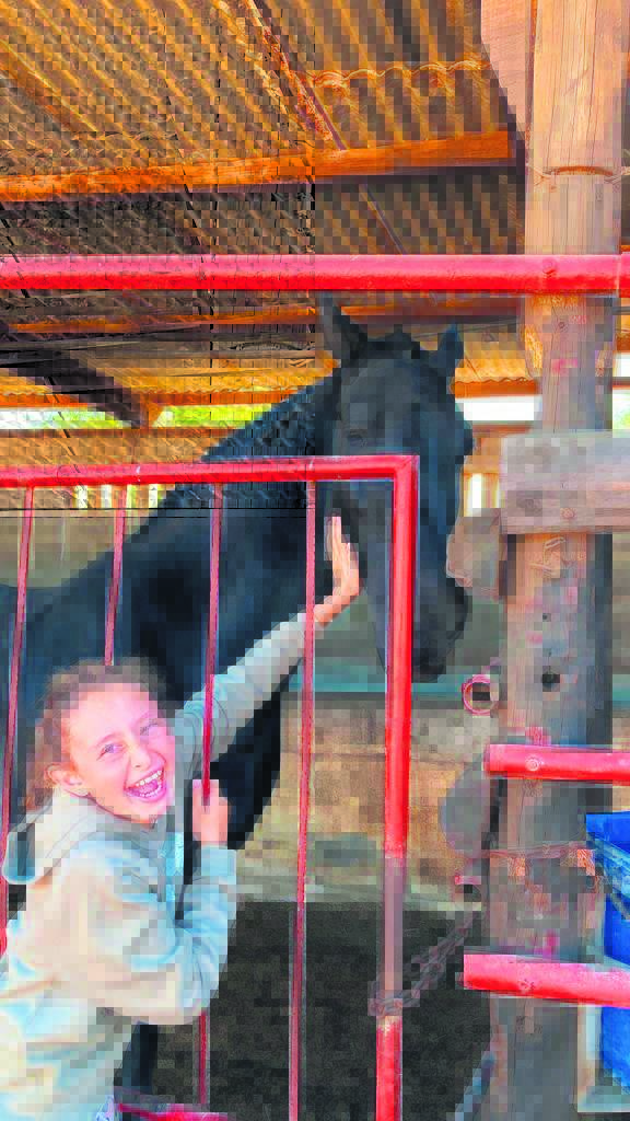 Danë Mostert van Stellenbosch het onlangs ’n bietjie by die perde en miniatuur-donkies by die Porterville-skouterrein gaan inloer, waar sy Louwna, die Vlaam-merrie, ontmoet het. Sy het ook met die miniatuur-donkies Annie en Sannie vriende gemaak. Foto: Cobus Germishuys