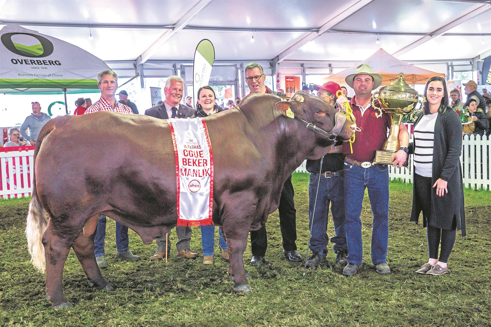 Die opperste kampioen (manlik): Franco Koch se Santa Gertrudis-bul, Kochbo Coleman (KT2082) van die Kockbo Santas-stoetery (Moorreesburg) stap vanjaar weg met die Paul Kotze-wisseltrofee-interras goue beker onder die manlike vleisbeesras.Foto’s: Carla Nieuwoudt van MarketReach