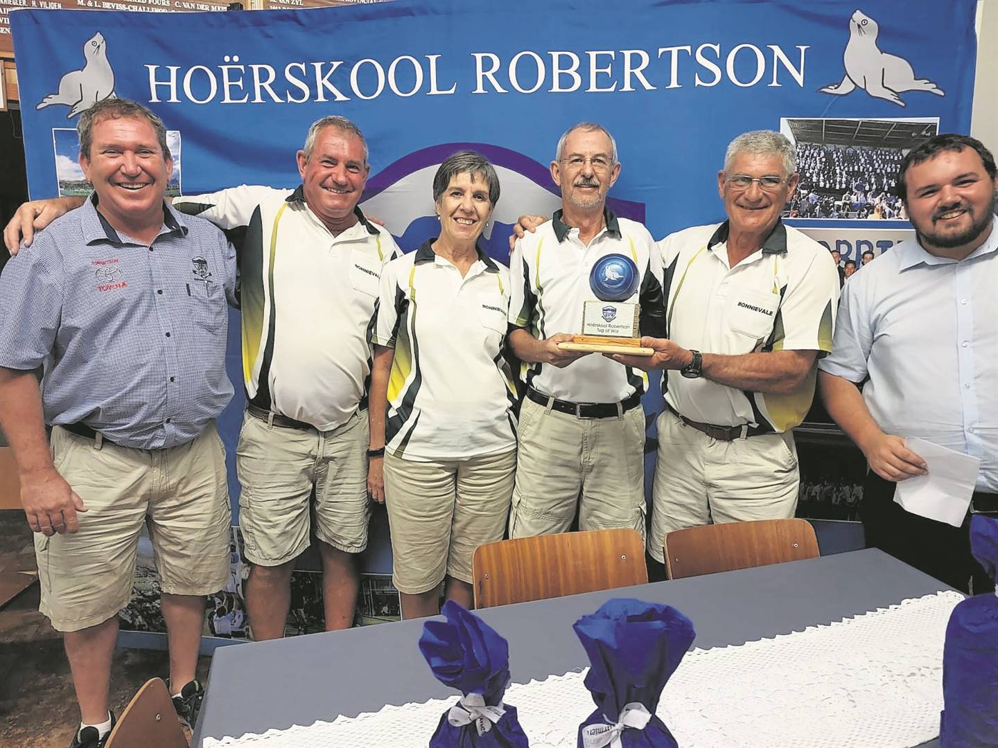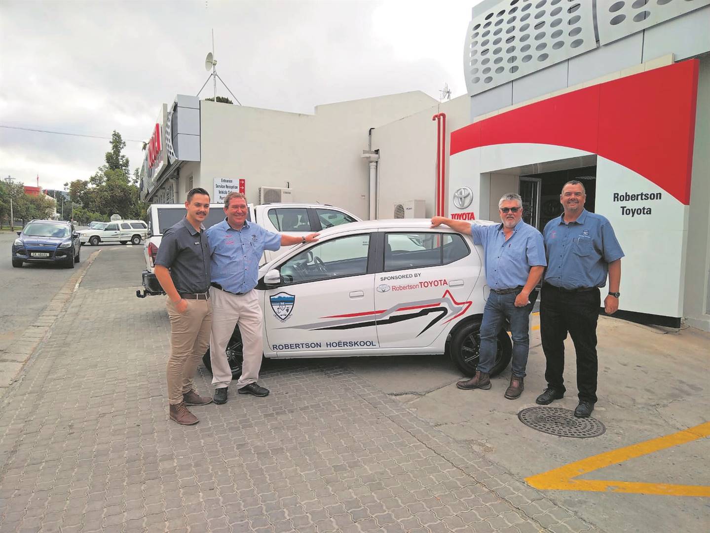 Die Hoërskool Robertson het Hannes Schreuder en Juan Schreuder van Robertson Toyota vir die borgskap van ’n nuwe motor vir die skool bedank. Van links staan Juan Schreuder, Jacques Bradford (skoolhoof van die Hoërskool Robertson), Hannes Schreuder en Hein Pieterse (sportorganiseerder en bemarker).