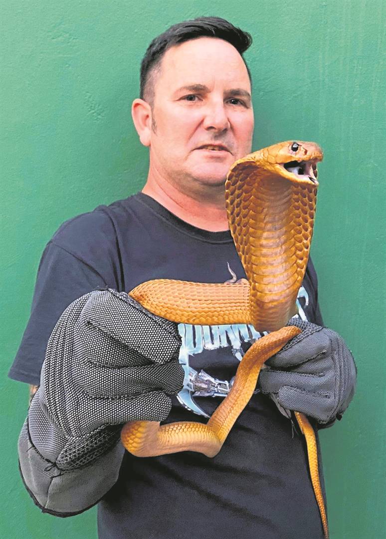 Dit is nie aldag dat jy iemand gewaar wat met ’n Kaapse kobra om die arm gedraai vir ’n kiekie poseer nie, en dít boonop met ’n groot glimlag op sy gesig; nog minder wanneer hy die glibberige koue gevoel van die geel stert wat om sy arm krul, geniet nie.