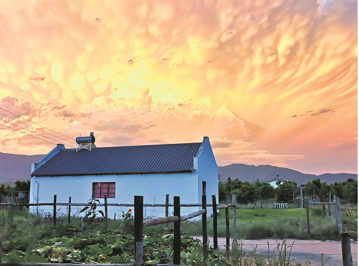 Hierdie asemrowende sonsondergang is onlangs deur Valmare Jacobs op die Exelsior-plaas vasgevang. Het jy ’n foto van die natuur, argitektuur of mense waarop jy trots is? Stuur dit na Tamsyn.Jantjies@media24.com. Onthou dit moet groter as 1 MG wees om oorweeg te word. Foto: Valmare Jacobs