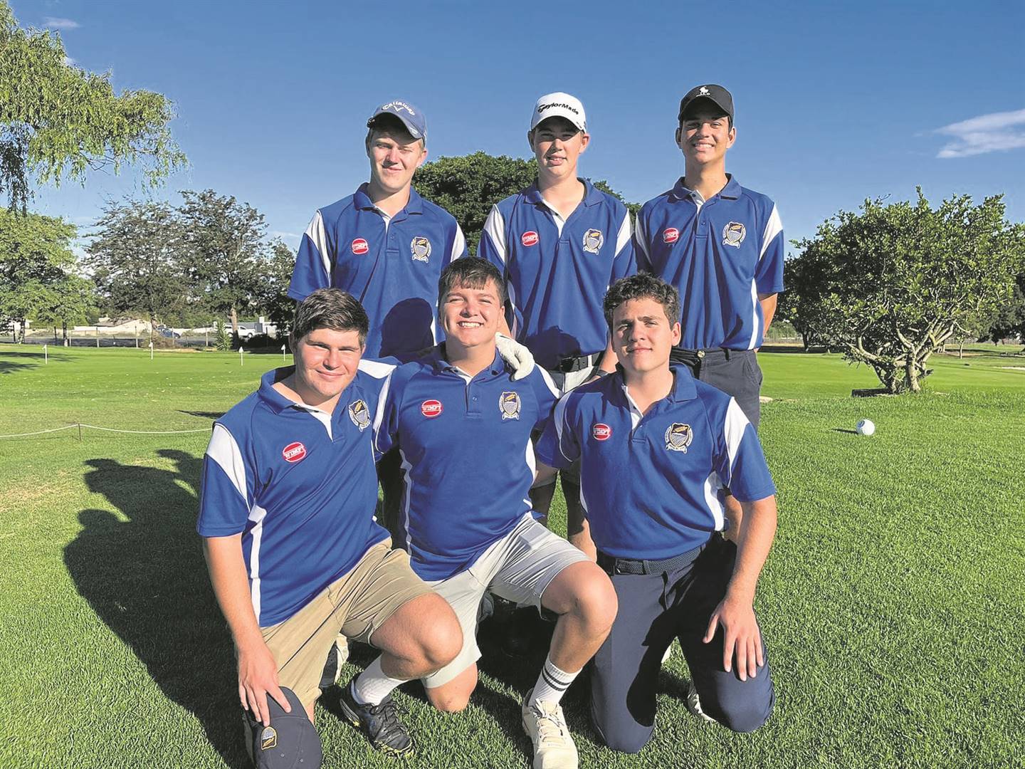 Die Hoërskool Swartland se gholfspelers het Maandag 6 Maart teen dié van die Hoërskool Vredenburg in ’n potjie gholf te staan gekom. Na afloop van die spel was die telling 77-31 in die Hoërskool Swartland se guns. Agter (van links) is Juriaan Schreuder, Marcel Basson en Inus Groenewald. Voor: Johan Jurgens, Stephan Malherbe en Johandré Theron.