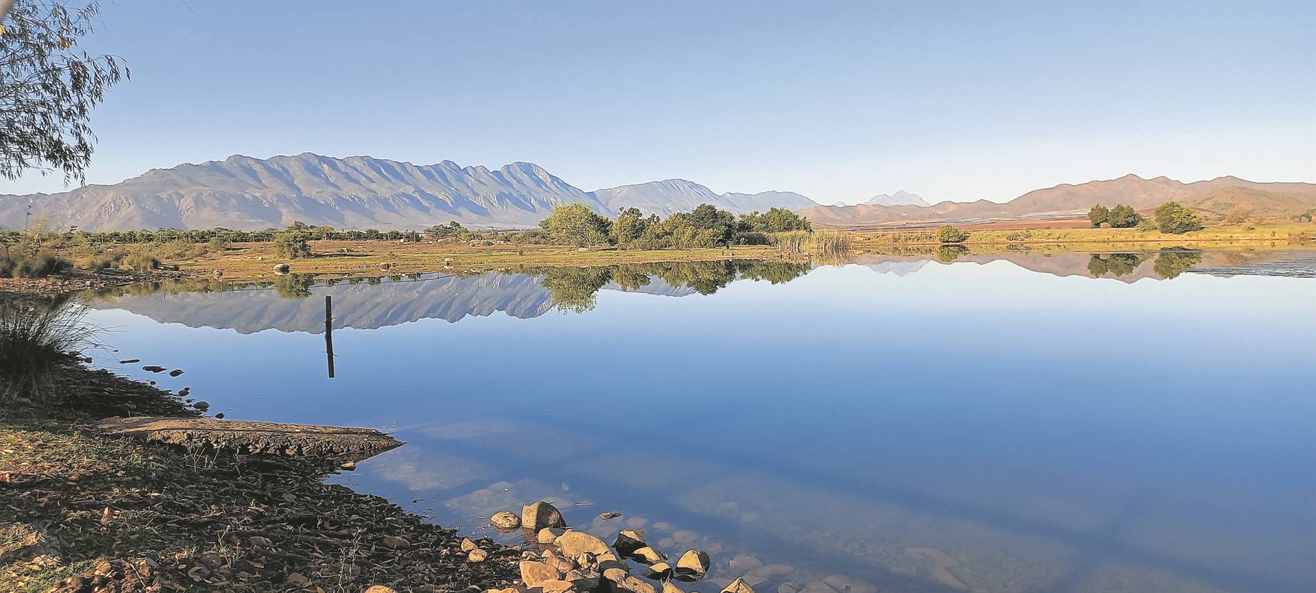Op ’n windstil dag is die weerkaatsing in die dam op die Excelsior-landgoed tussen Robertson en Ashton prentjiemooi en perfek. Hoewel die ysige koue Langebergers die afgelope week behoorlik opgekeil het, was daar darem een of twee lekker sonnige dae tussenin. Foto: Karin Esterhuizen