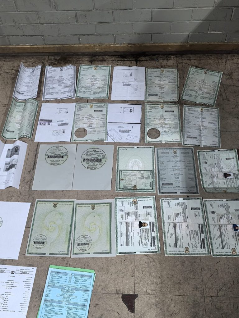A search of the location resulted in the discovery of fraudulent materials. Photo: SAPS